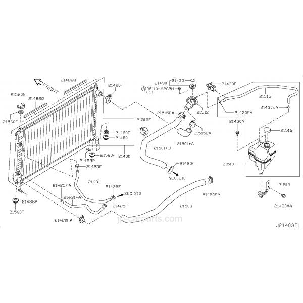 21517-JN20A Genuine Nissan PIPE-SUB RADIATOR 21517-3TS0A